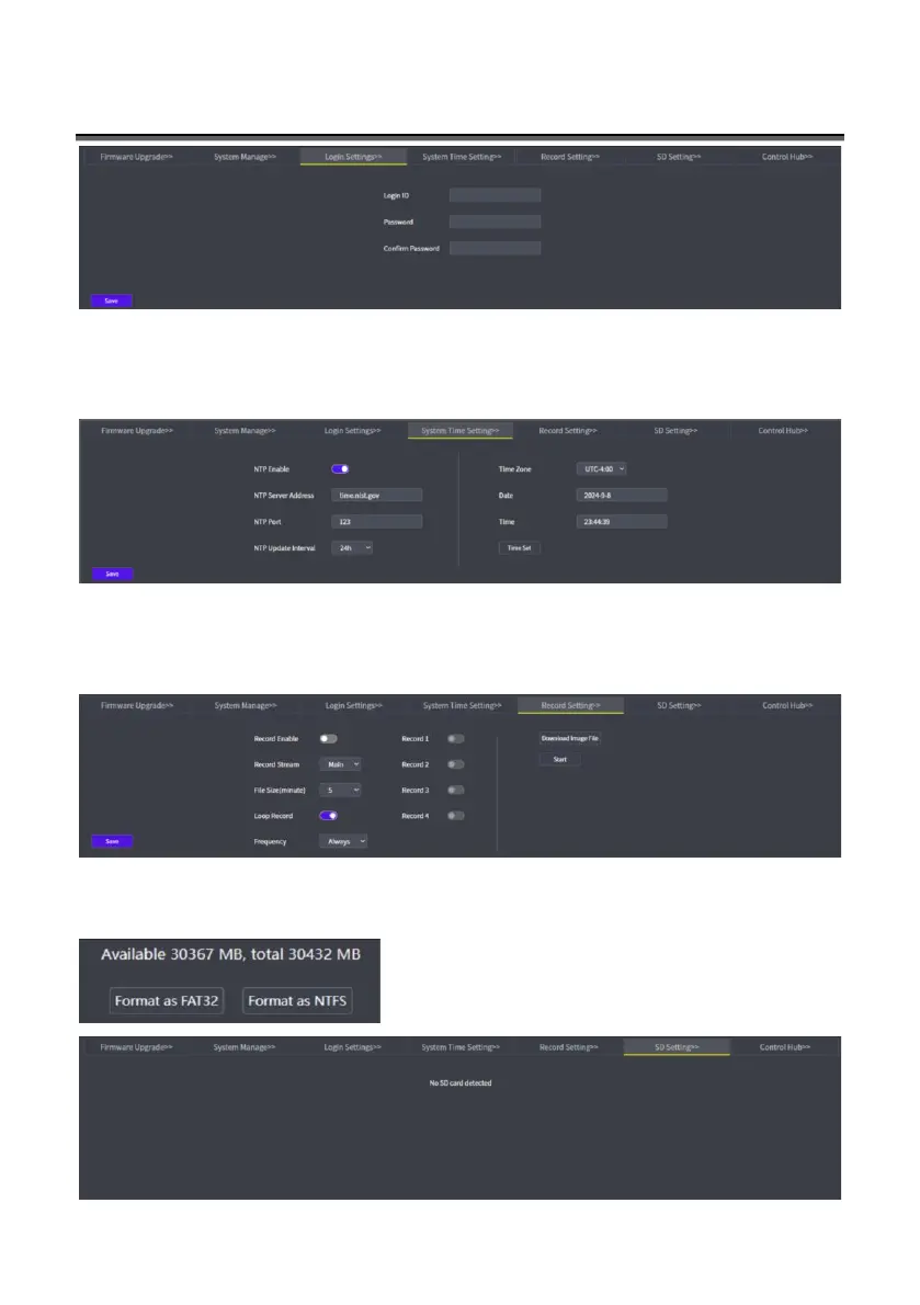 including Record enable, Record stream, File size, Loop record, and Frequency as