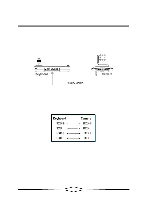 The keyboard connects to the camera via RS422 cable, set the corresponding
