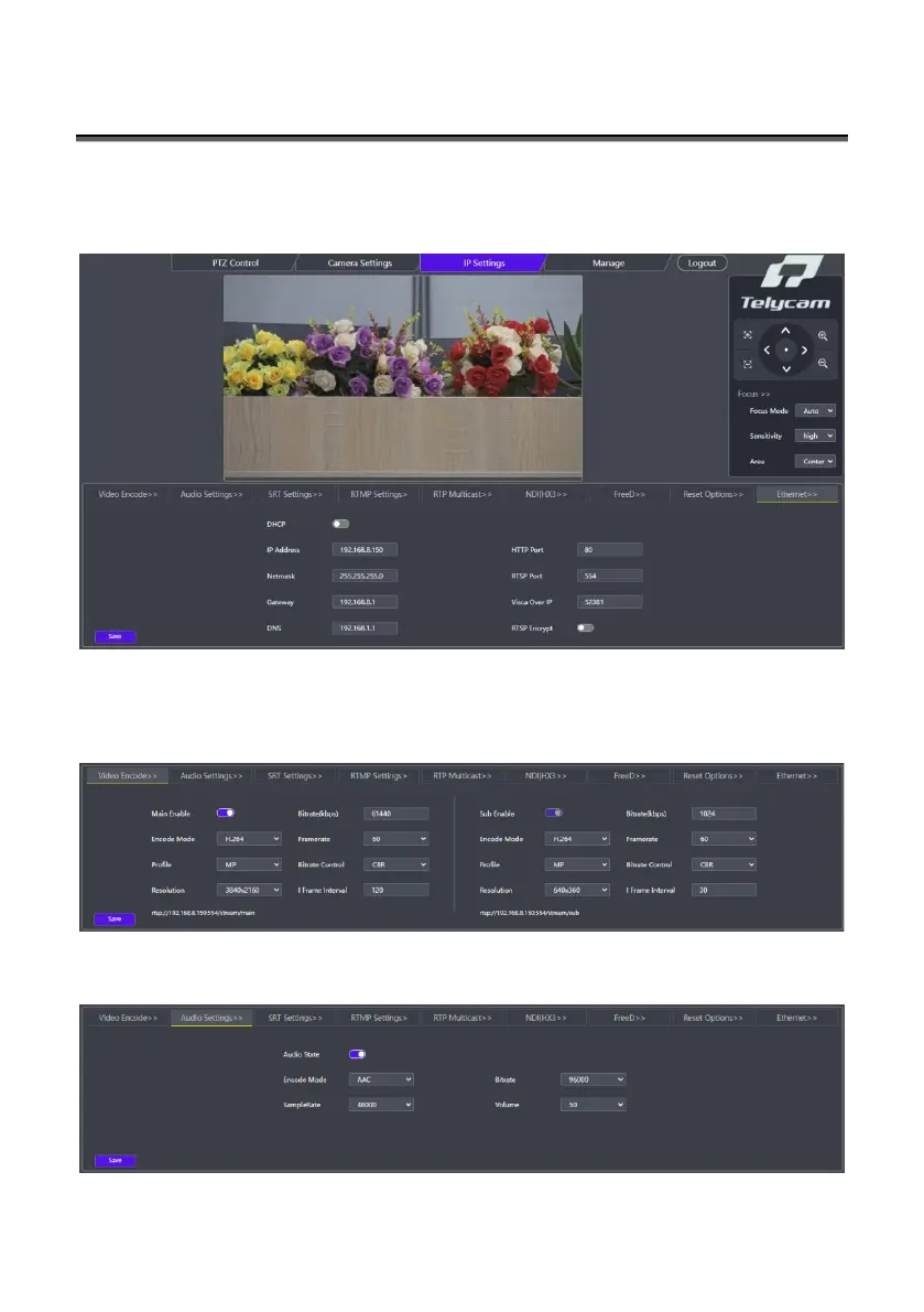 enable, encoding mode, profile, resolution, bit rate, frame rate, bit rate control, I