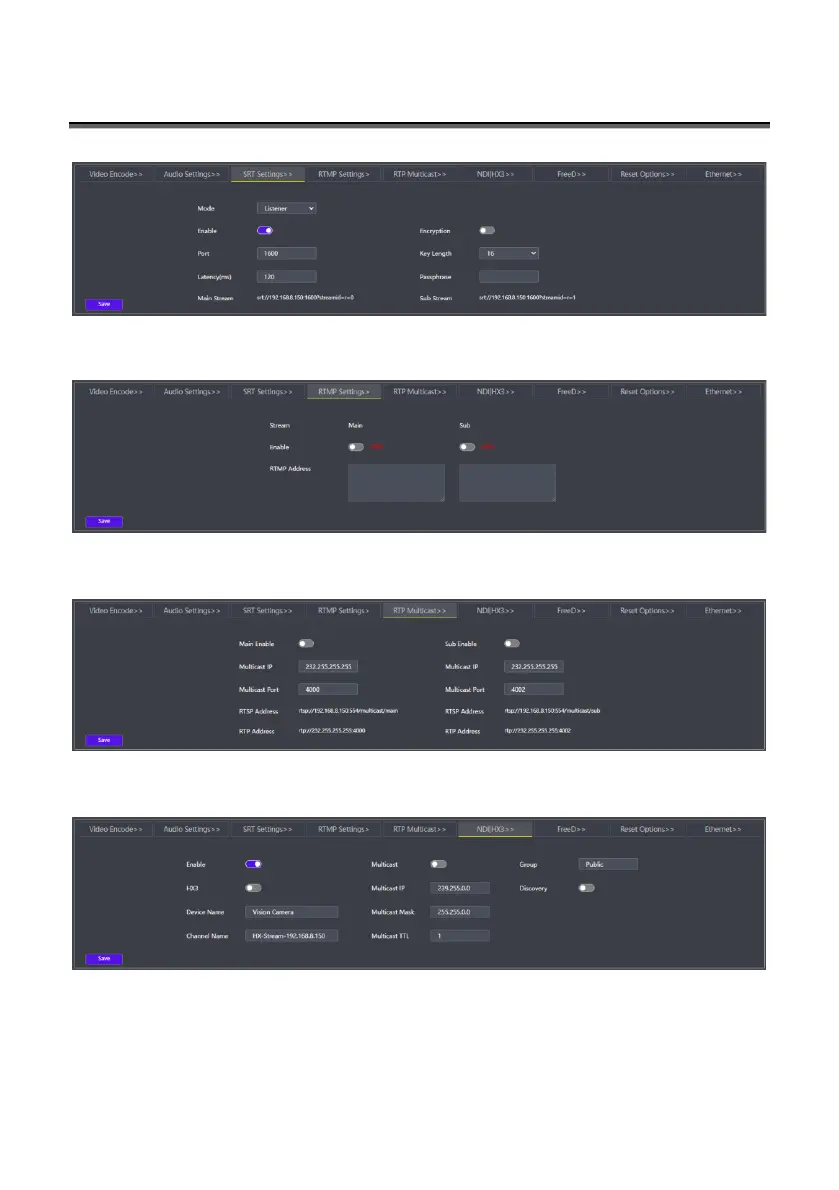 The "RTMP Settings" option includes enable switches and RTMP address