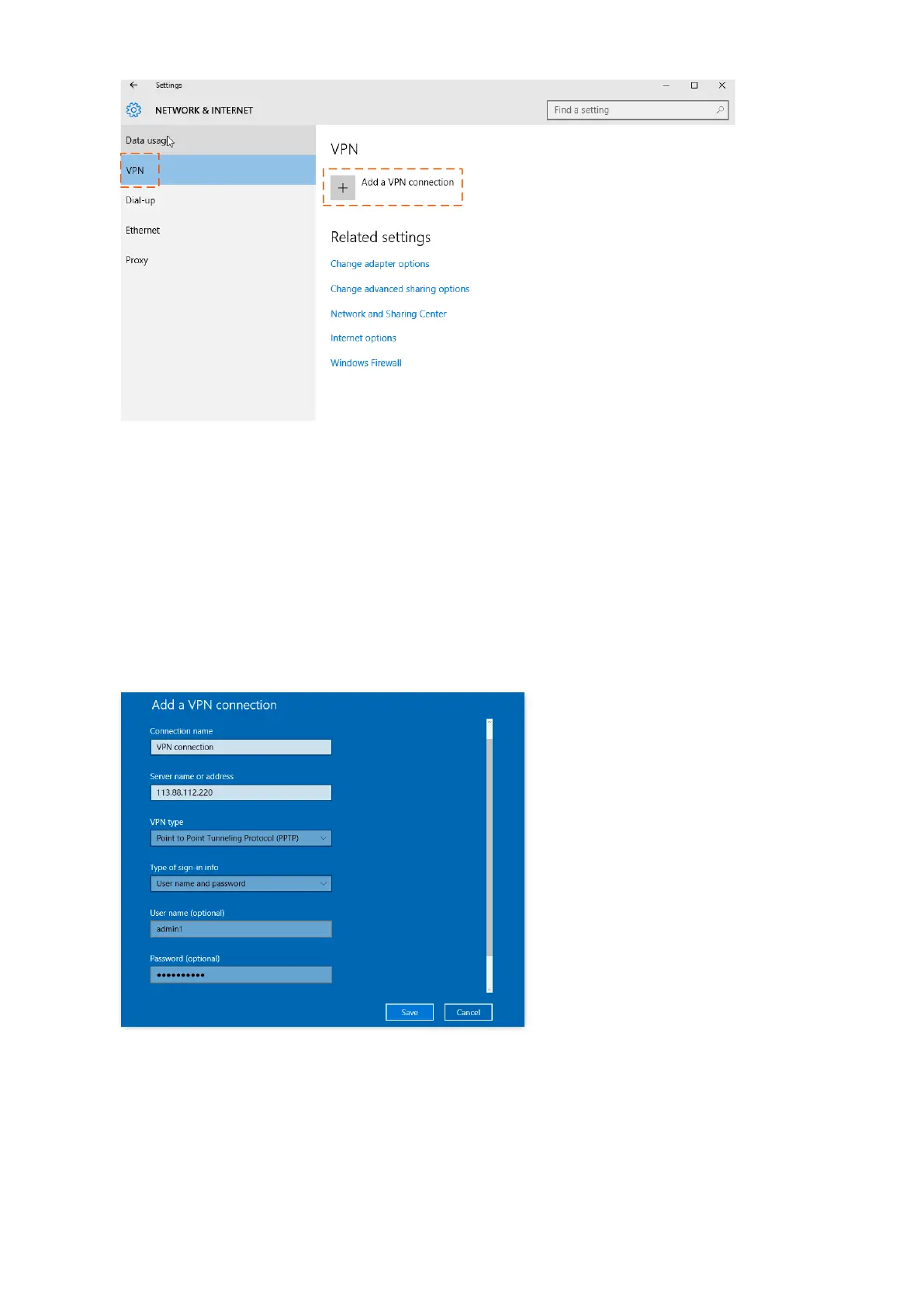 7) Enter the user name and password you have set for the PPTP VPN server on your router.