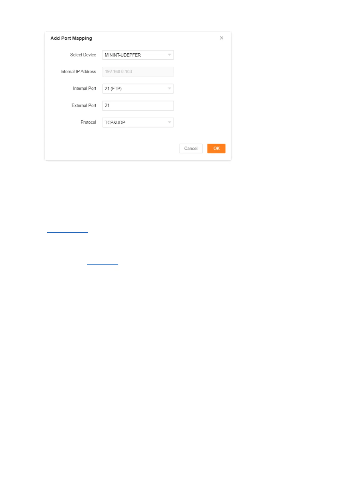need to visit “Protocol name://WAN IP address of the mesh device: External port” to access the