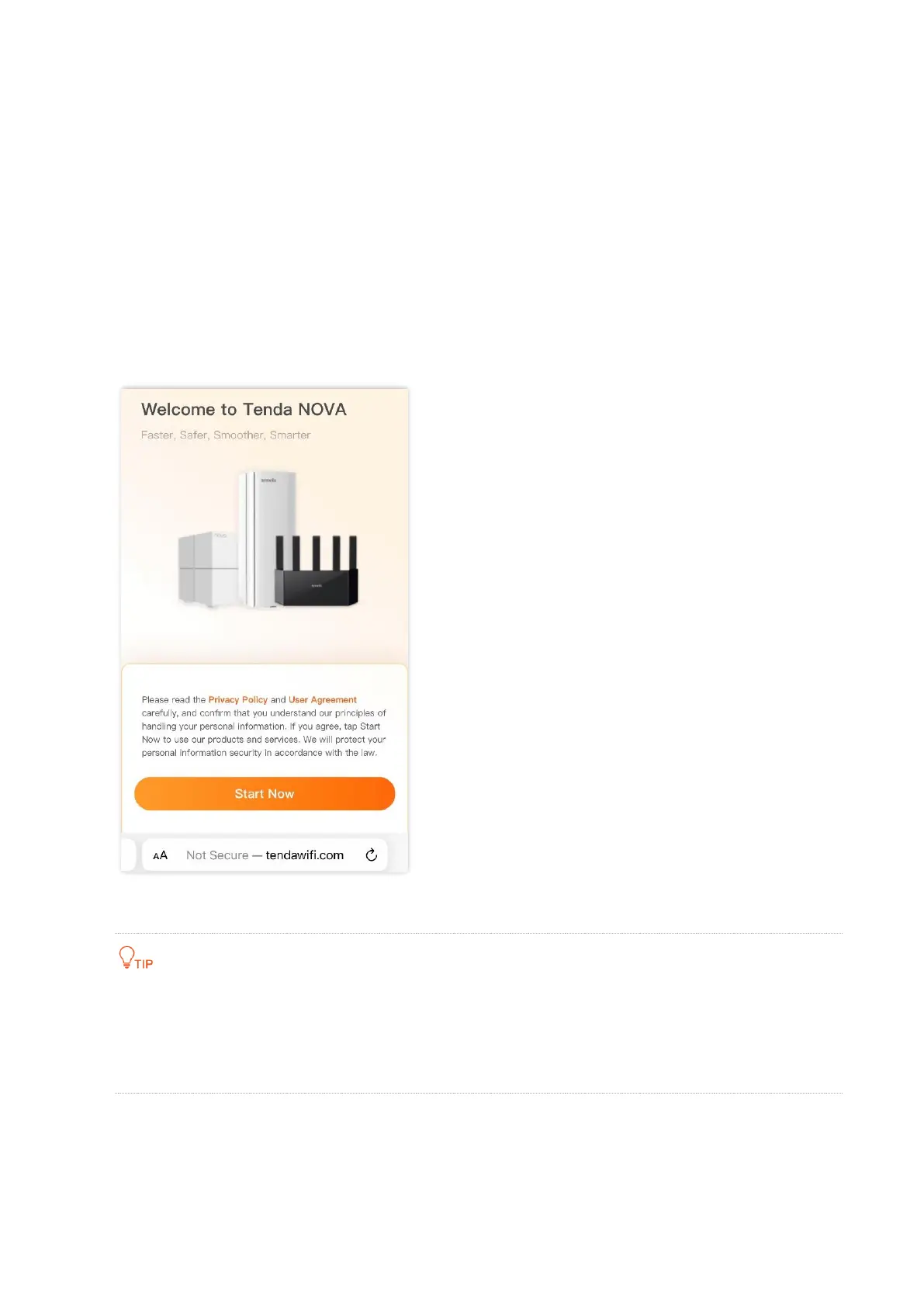 If the page does not appear automatically, enter tendawifi.com in the browser address bar.