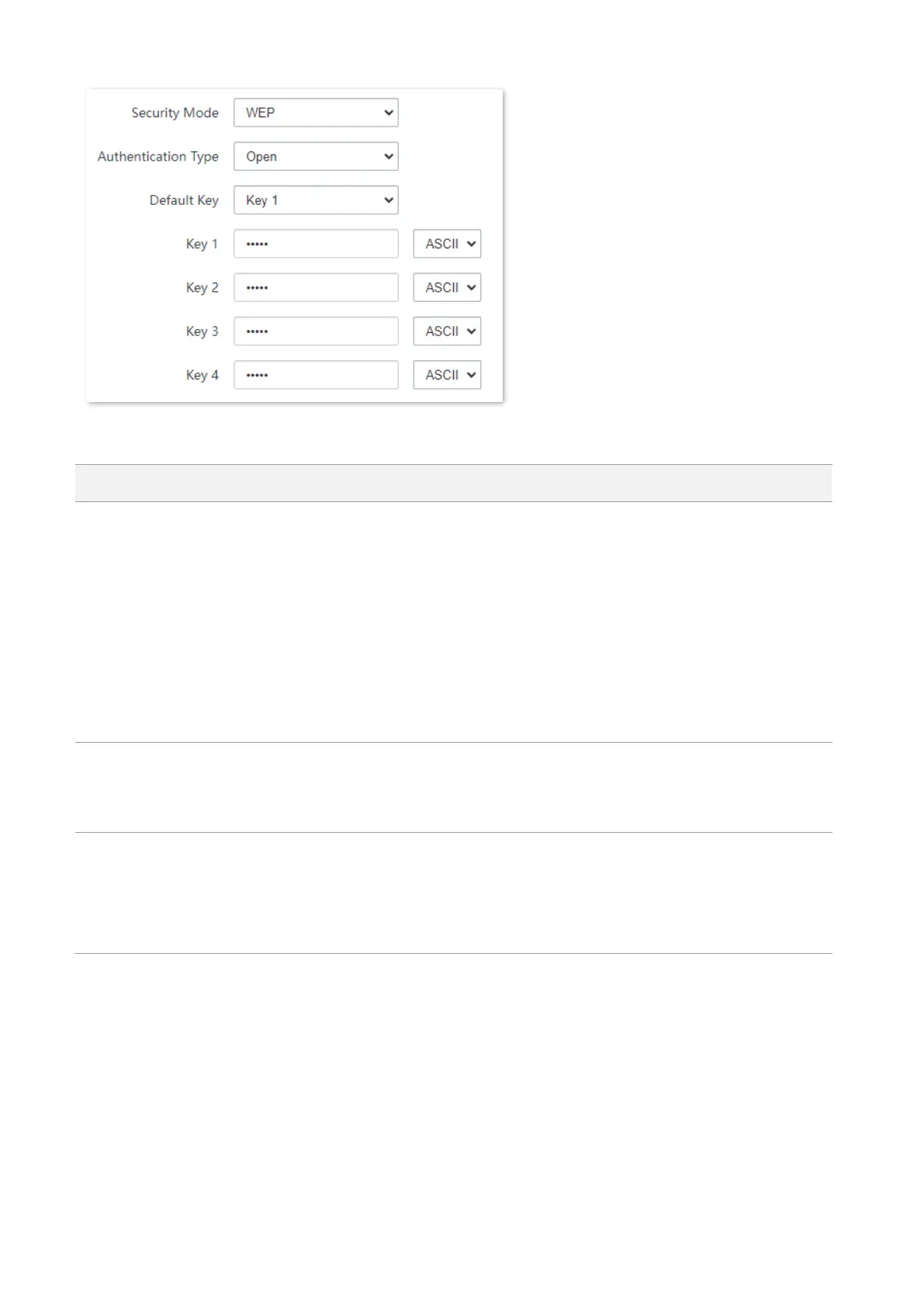 Specifies 4 WEP keys are allowed at the same time, but only the one specified by the