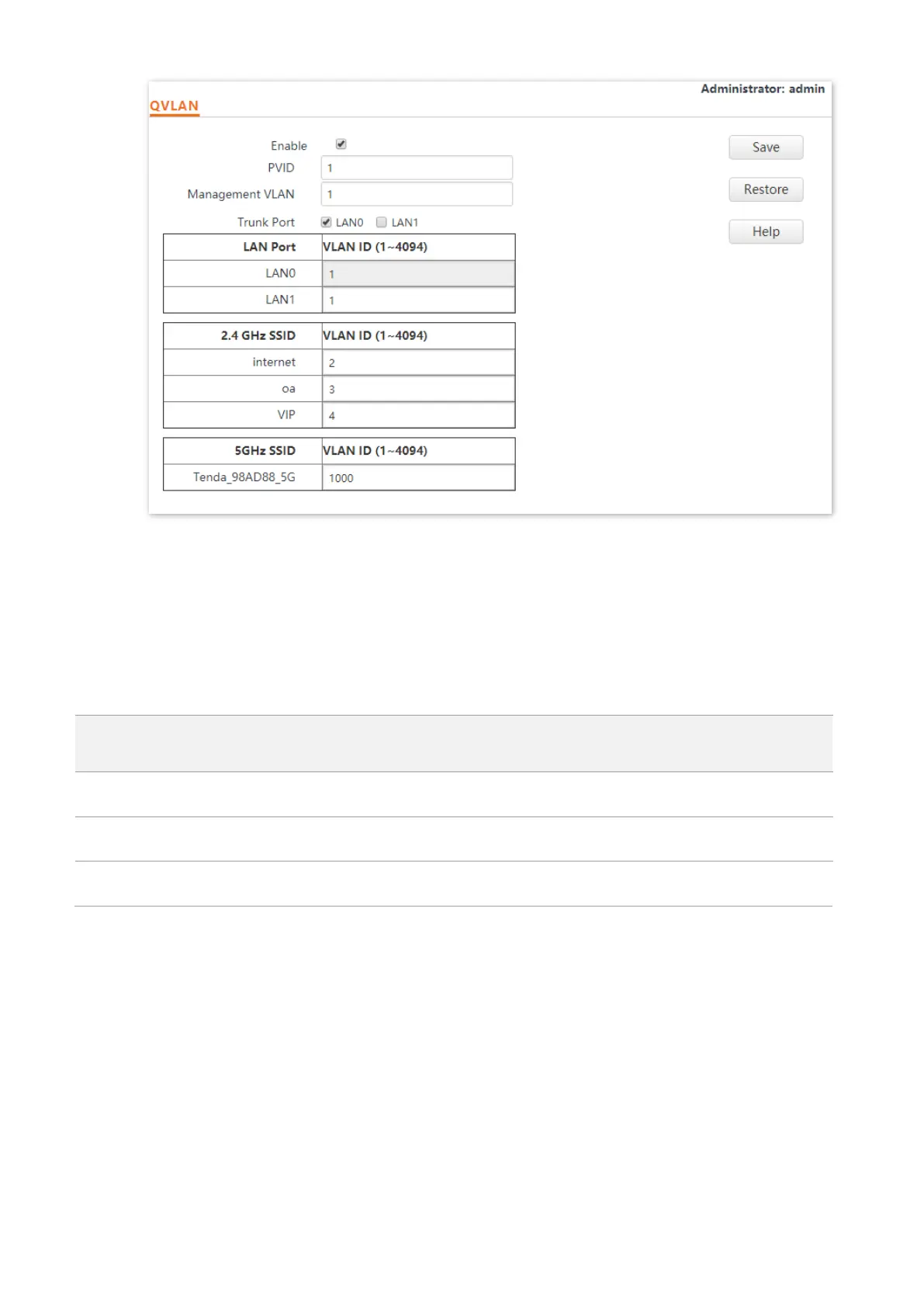 server must support the QVLAN function and need to be configured. See the following table.