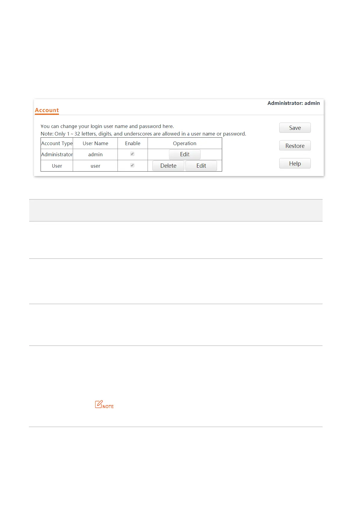 After editing, deleting, or adding an account, click Save to apply the settings.