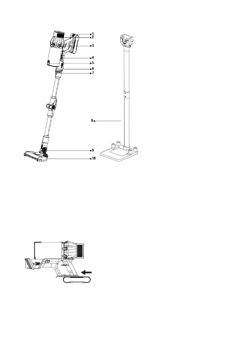 • Připojte hlavici turbokartáče k trubici a zasuňte ji do těla vysavače. Nástavce k vysávání můžete