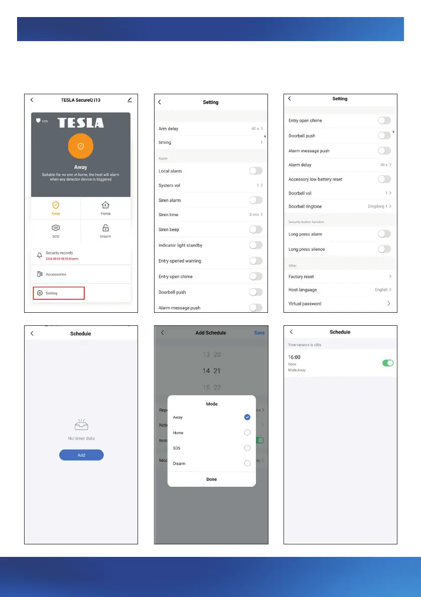 Mobile notications and alarm settings: All settings for siren, alarm displacement,