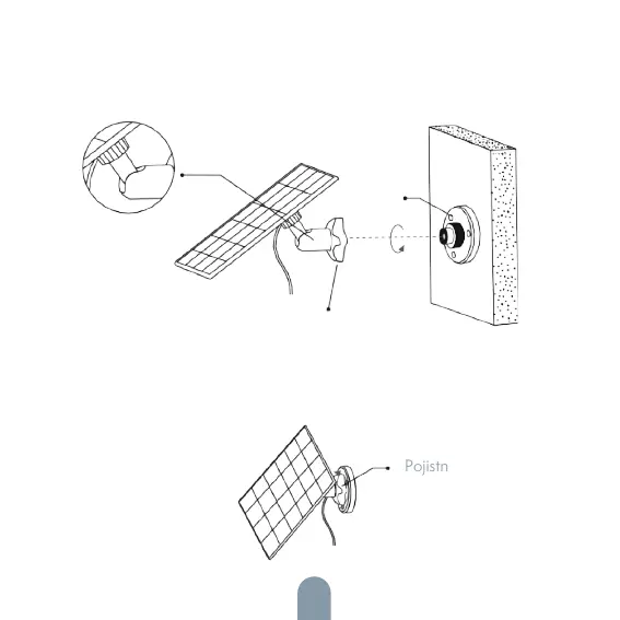 Při naklánění solárního panelu vlevo nebo vpravo povolte uzávěr pojistné mati-