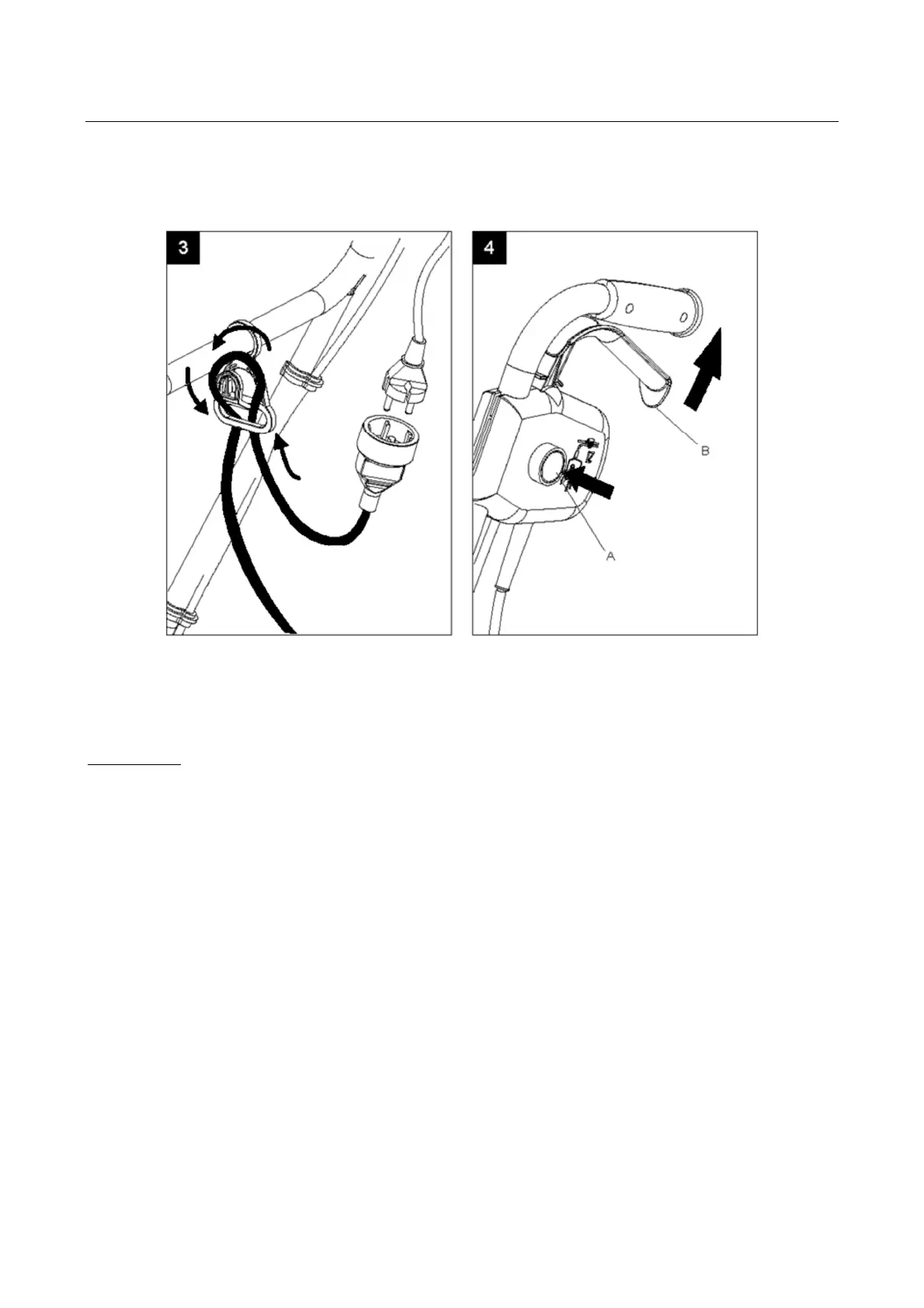Uruchom urządzenie wciskając włącznik bezpieczeństwa A i ciągnąc rączkę B w kierunku