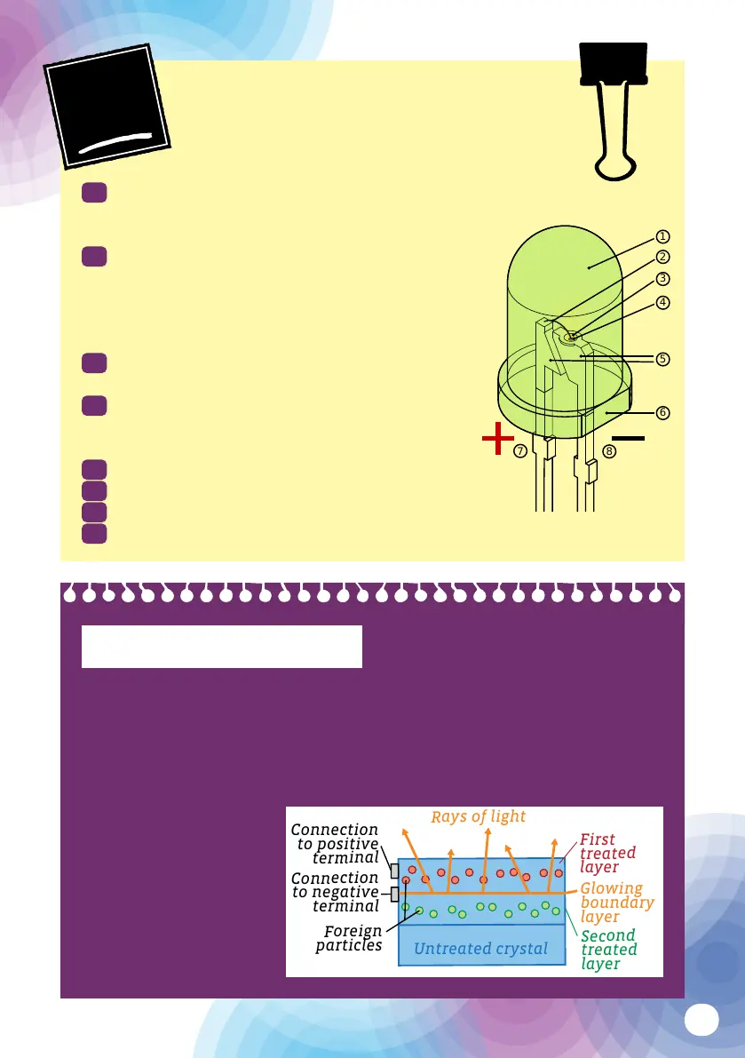 Inside an LED, there is a tiny piece of artificial crystal. Two thin layers