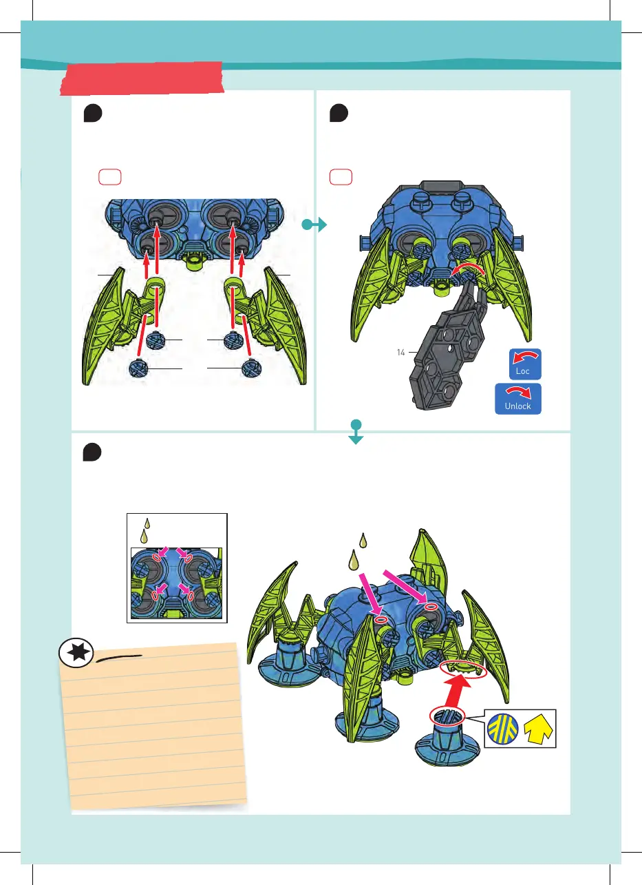Attach the four suction-cup feet to the legs. Pay attention to the direction of