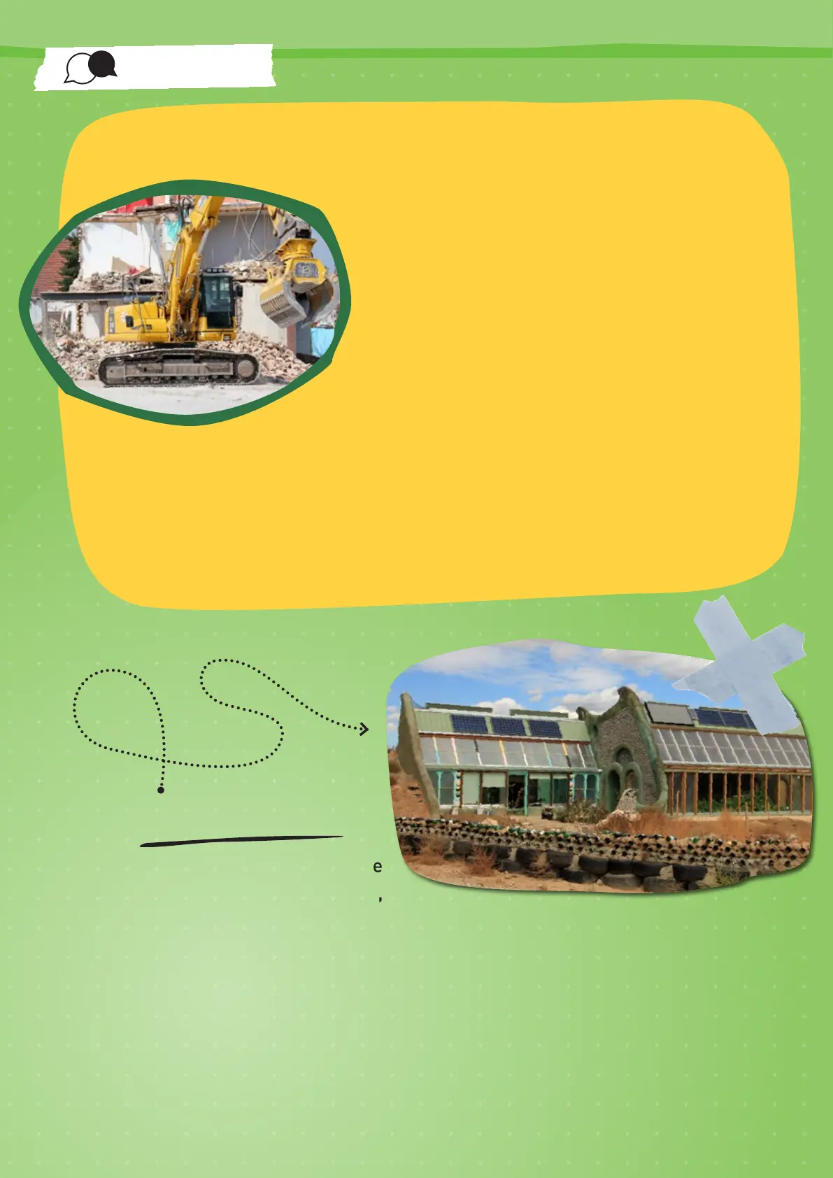 recycled waste materials such as tires, bottles or cans and plastered with clay.