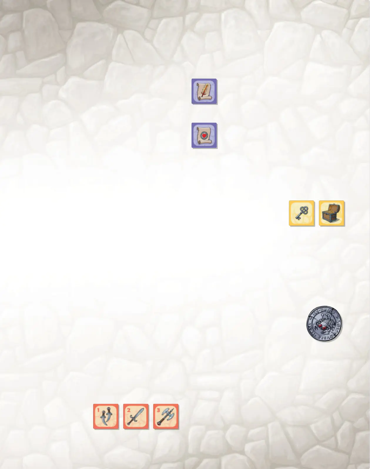 Held kann sich also mit maximal 2 Wafen, 3 Zaubern und 1 Schlüssel