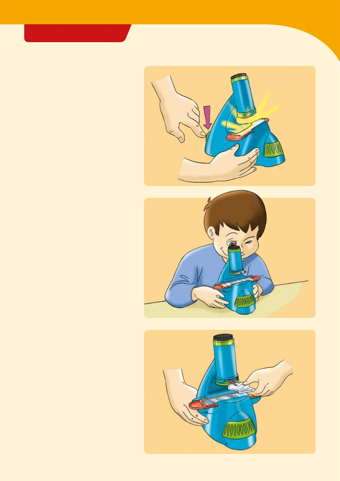 microscope to turn the light on or off.
