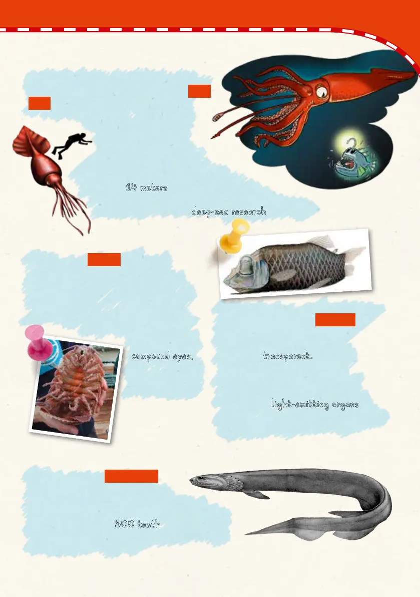 rows of 25. Large squid and deep-sea fish