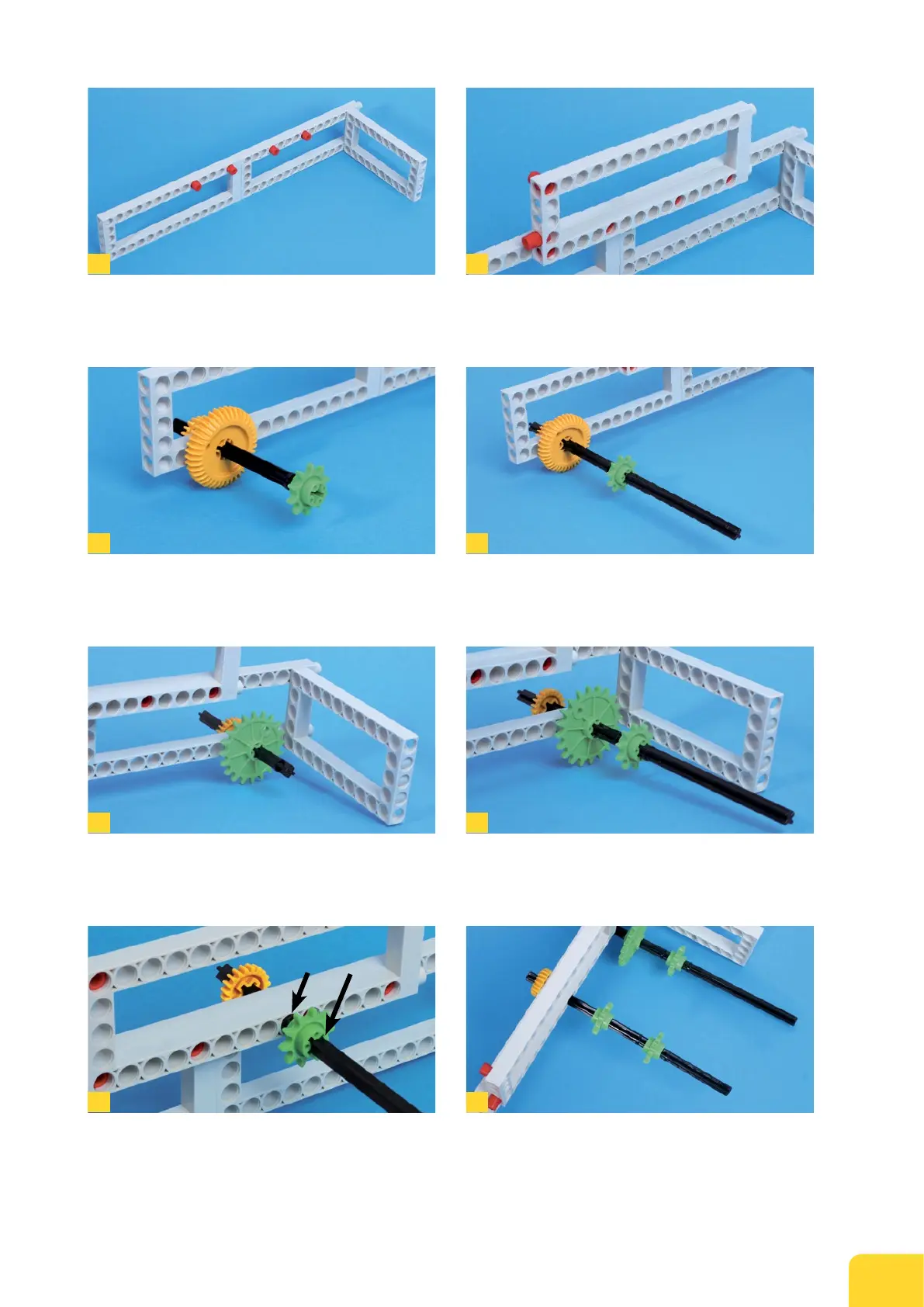 sprocket wheel (9) and then insert a long axle shaft (16).