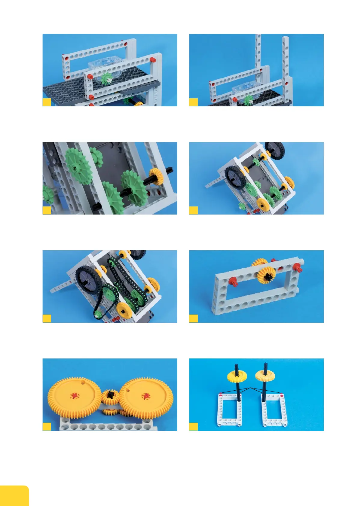 addition, insert two medium gear wheels (7) onto two long axle shafts