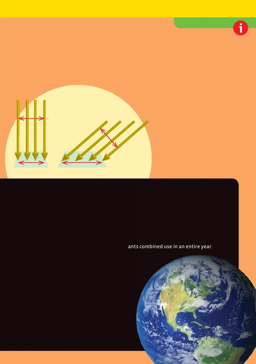 when the sun is directly overhead, its rays hit Earth perpendicular to the ground (at a 90° an-