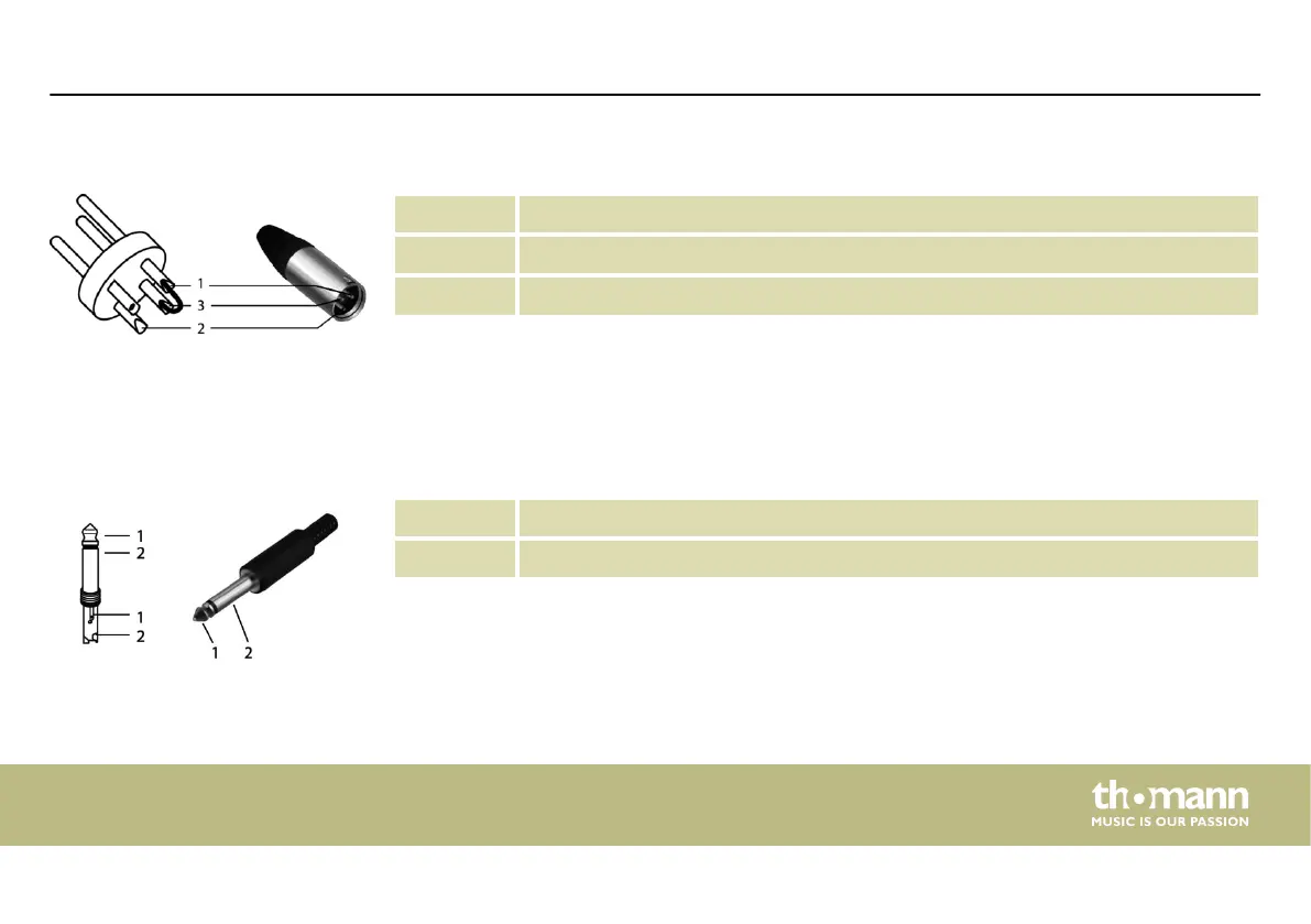 The gure and the table show the pin assignment for ¼-inch jack plugs.