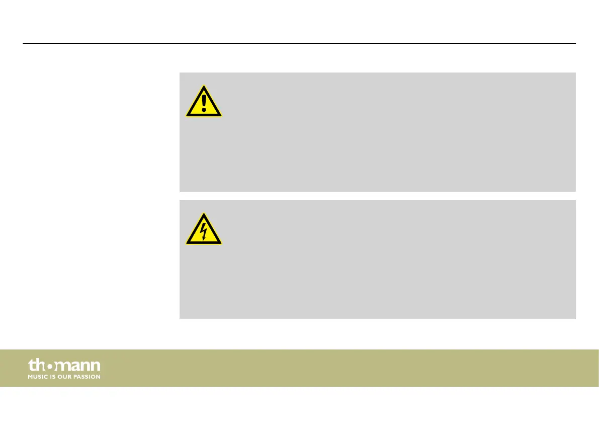 Within the device there are areas where high voltages may be present. Never