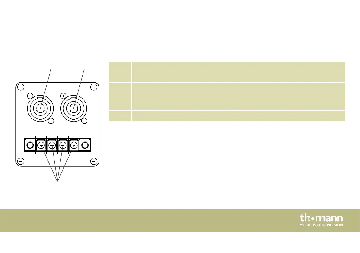 Lockable NL4 output connector (1+/1– looped-through) to connect another