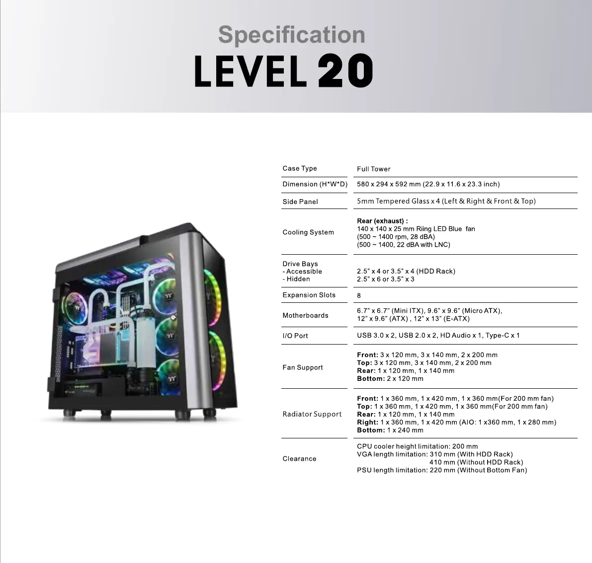 Bekijk gratis de handleiding van Thermaltake Level 20 XT, stel vragen en lees de antwoorden op veelvoorkomende problemen, of gebruik onze assistent om sneller informatie in de handleiding te vinden of uitleg te krijgen over specifieke functies.