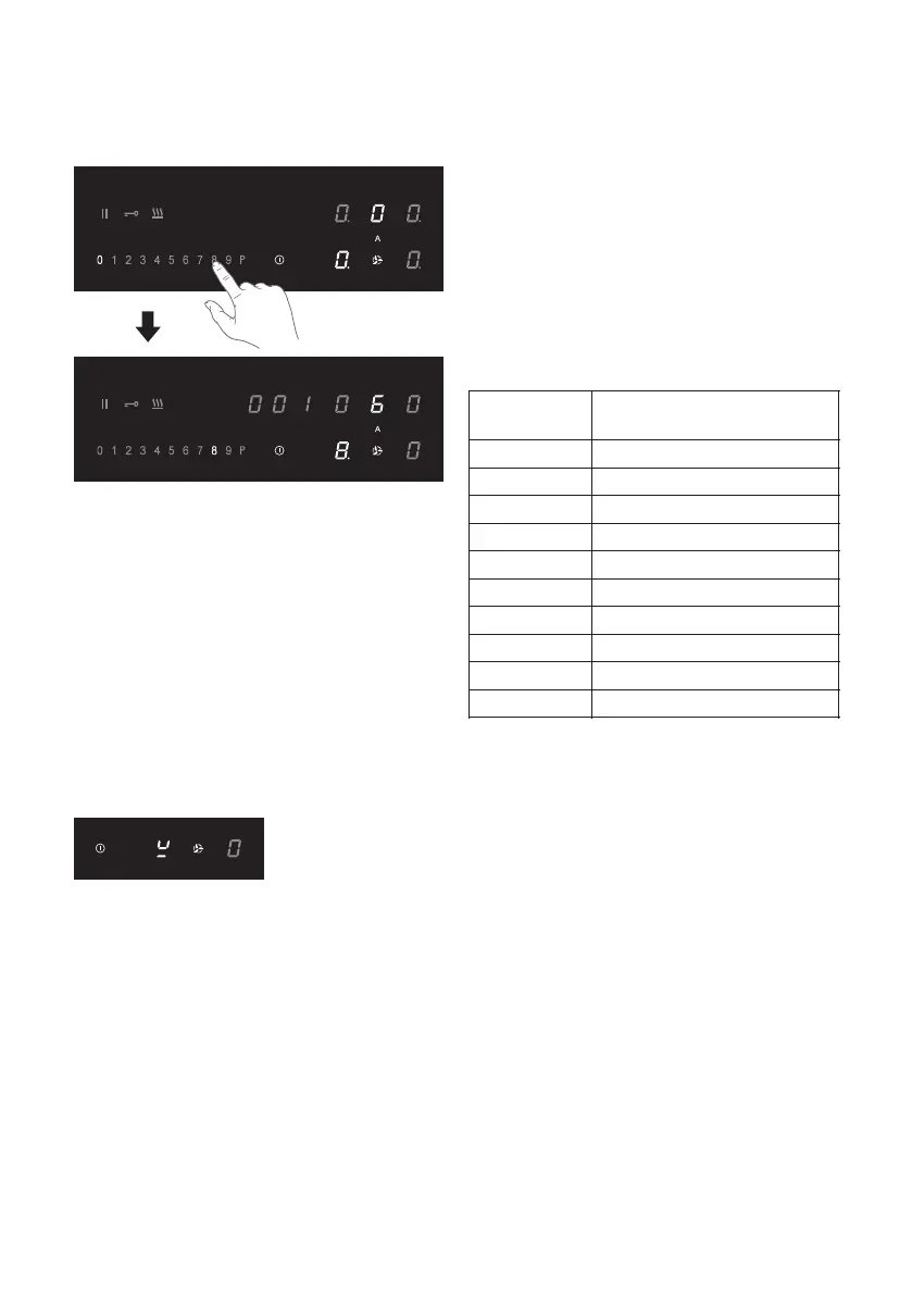 Ÿ The ‘0' of the selected cooking zone will light