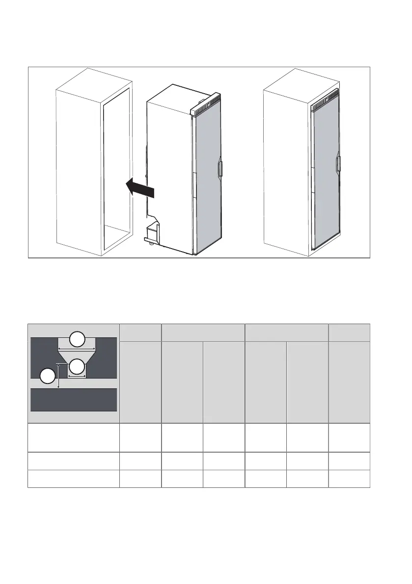 Fix the refrigerator in place with the screws, using the pre-drilled positions in the