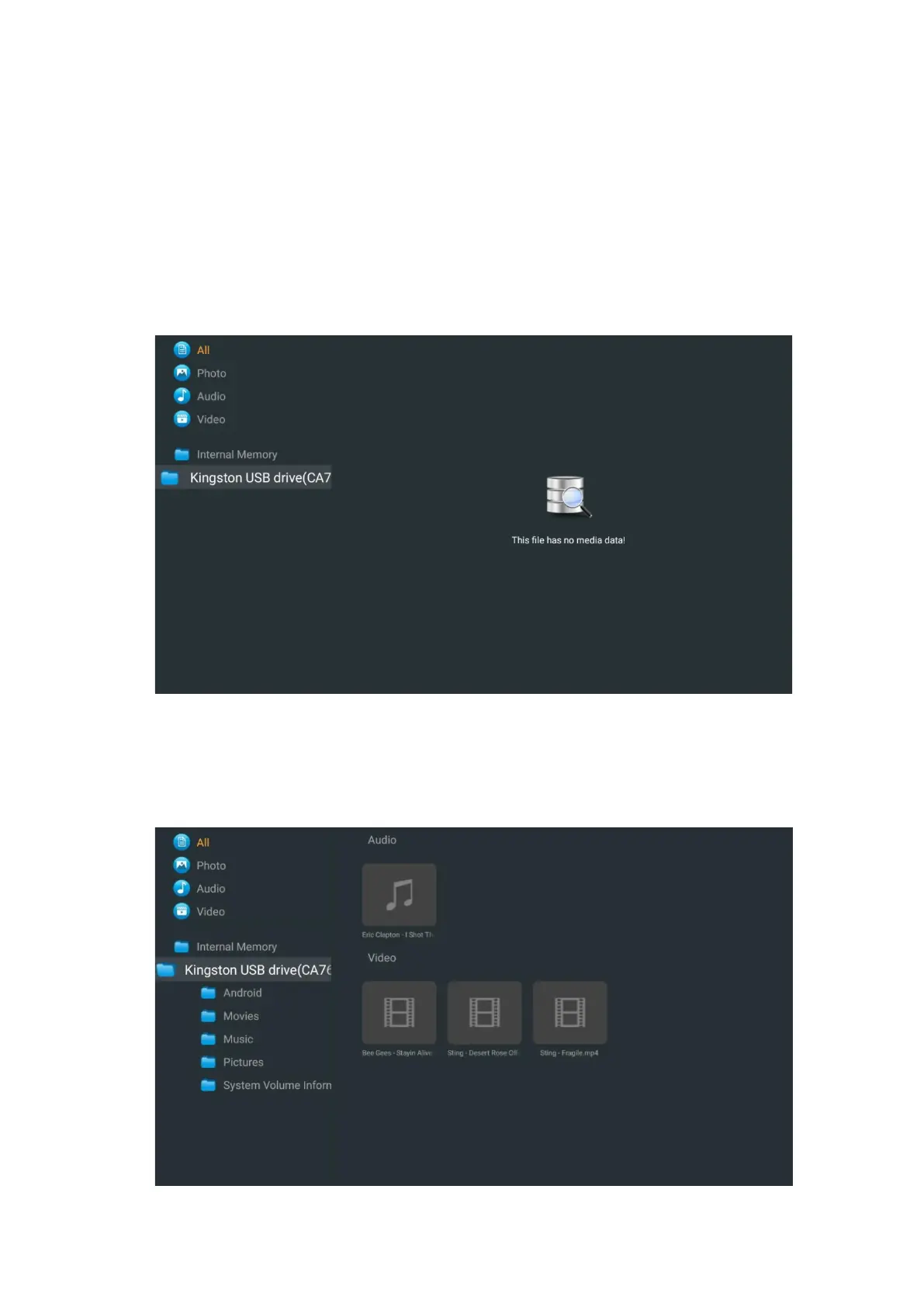 Selecteer je USB-opslagapparaat op het scherm en druk op OK. De opgeslagen multimedia-