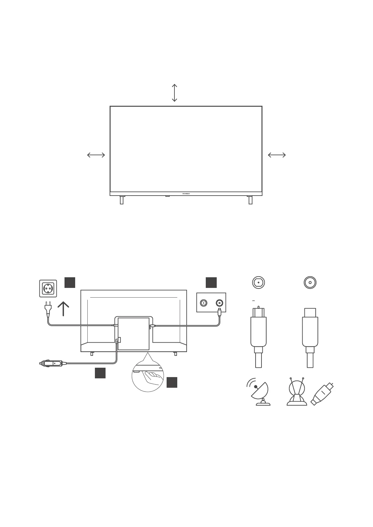 1. Connect the antenna cable to the antenna socket on the back of the TV.