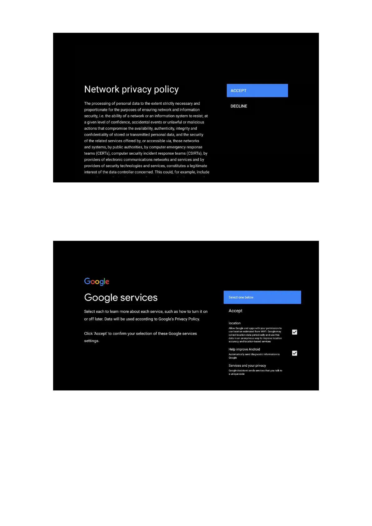 Select “Accept” to conrm if you want your location identied on your Android TV and agree to automatically