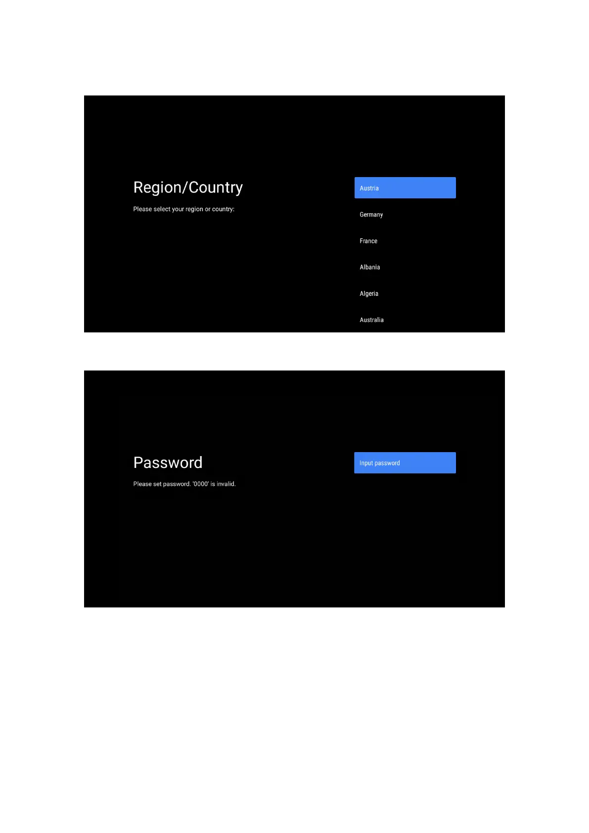 Select the country you are using the device in with the directional buttons, then press OK to conrm.
