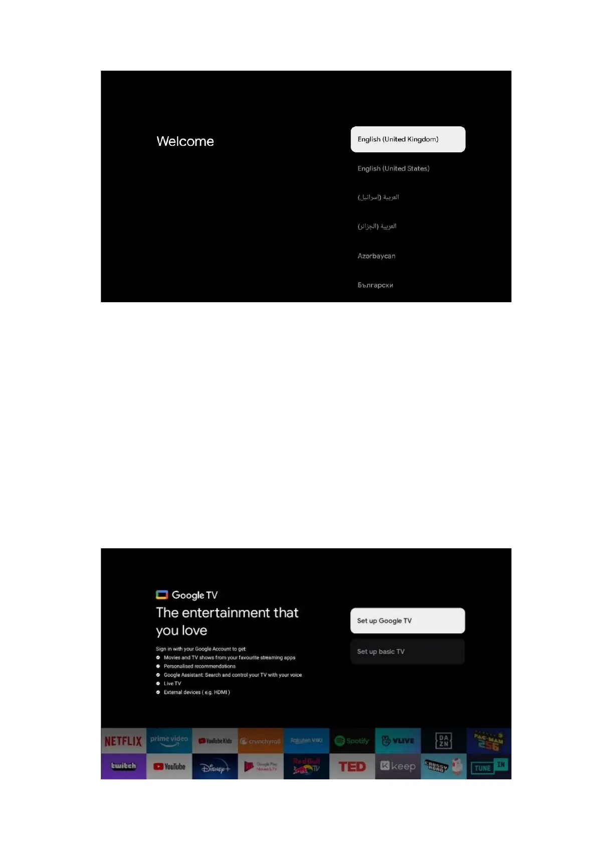 Note: If you select Set up Google TV, you will require a Google account to proceed with the