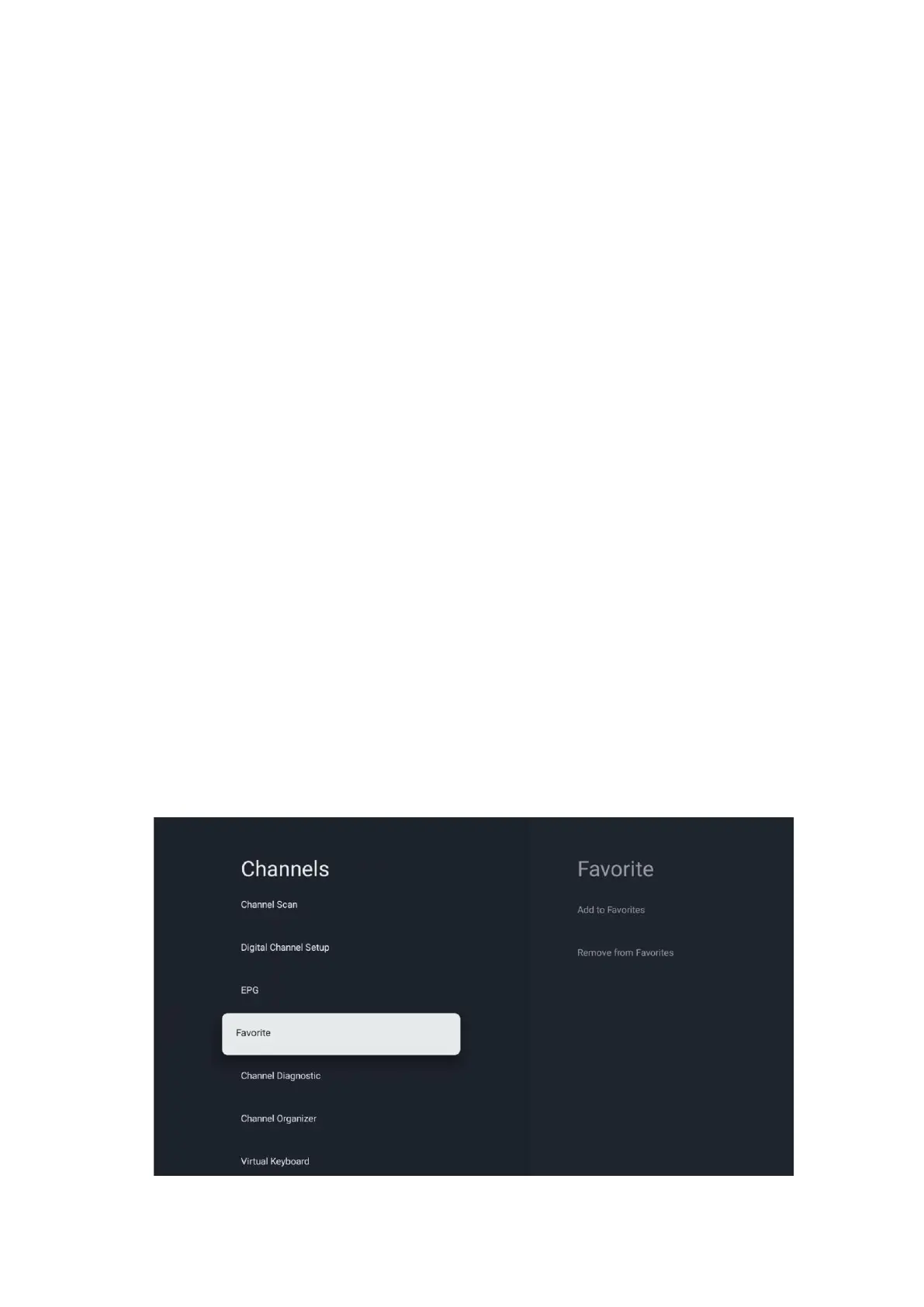 To add or remove channels to/from favorites, simply press the yellow or blue buttons
