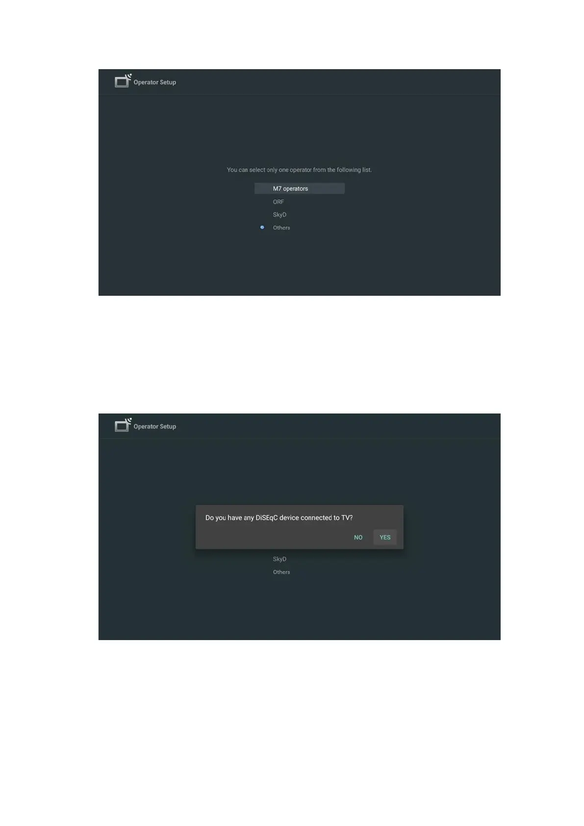 If your TV is connected to a satellite system for reception of multiple satellites, select Yes and