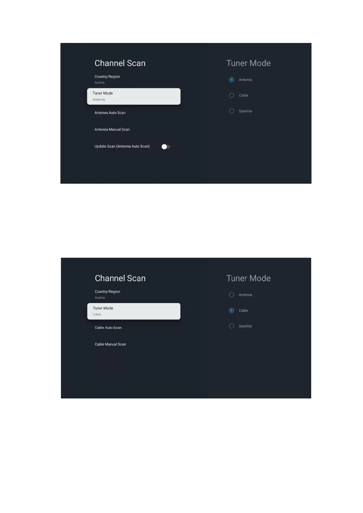 Select Cable in the Tuner Mode submenu and press the Back button to return to the Channel