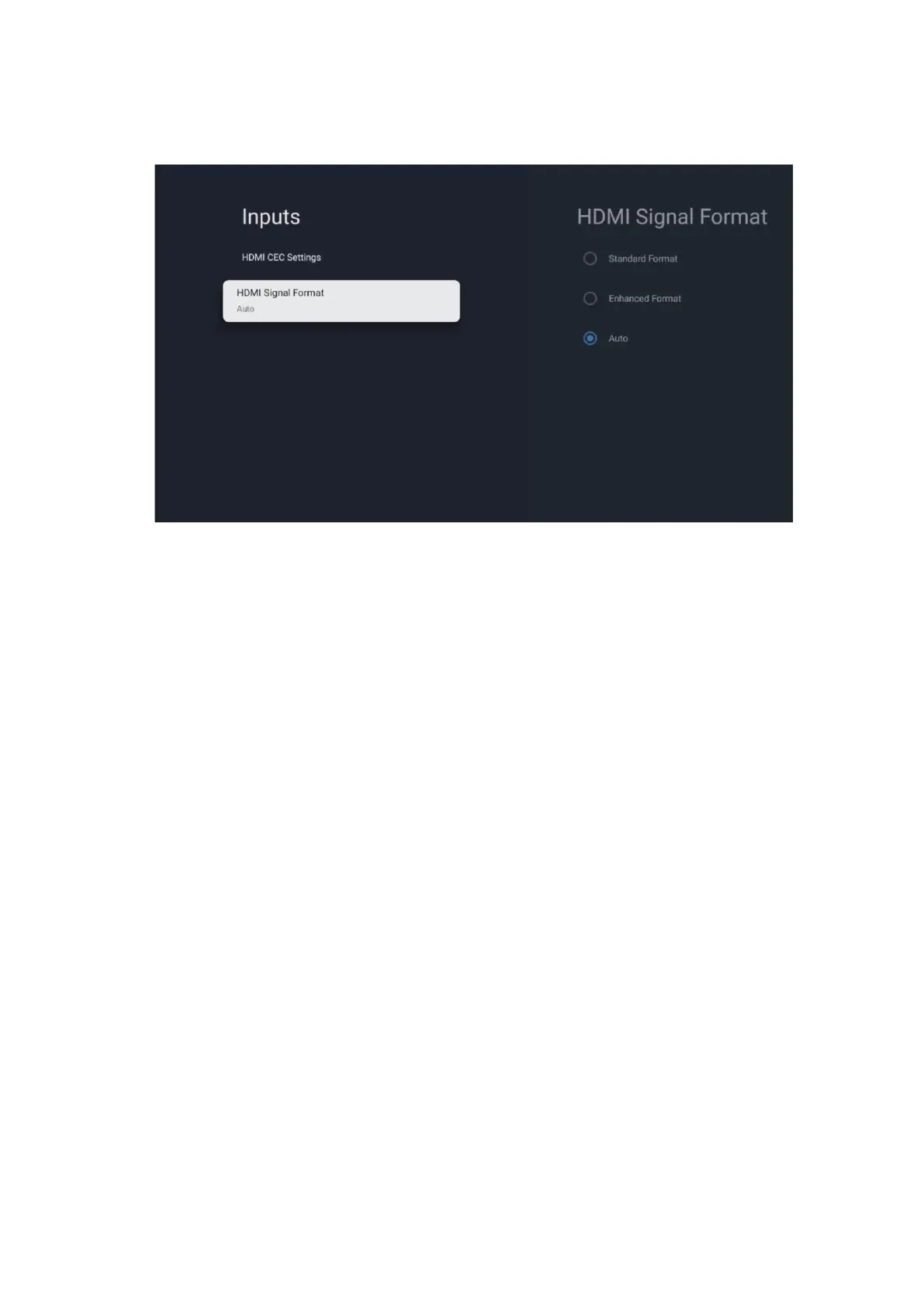 HDMI 2.1 format, the TV will automatically switch to the Standard Format of HDMI 1.4.