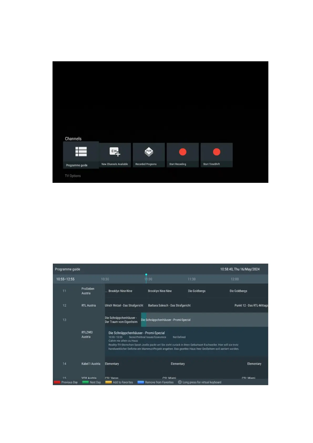 Select a current or upcoming broadcast event and press OK to read the content description (if
