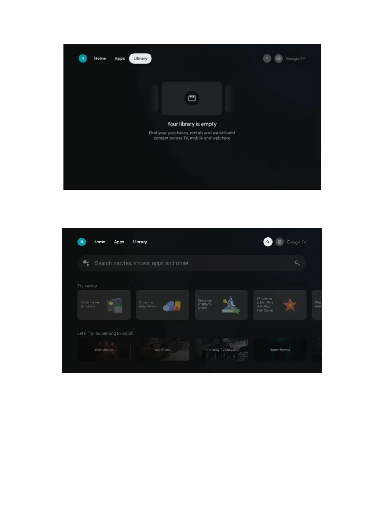 search field appears at the top of the screen. Ask your question to Google and your TV will