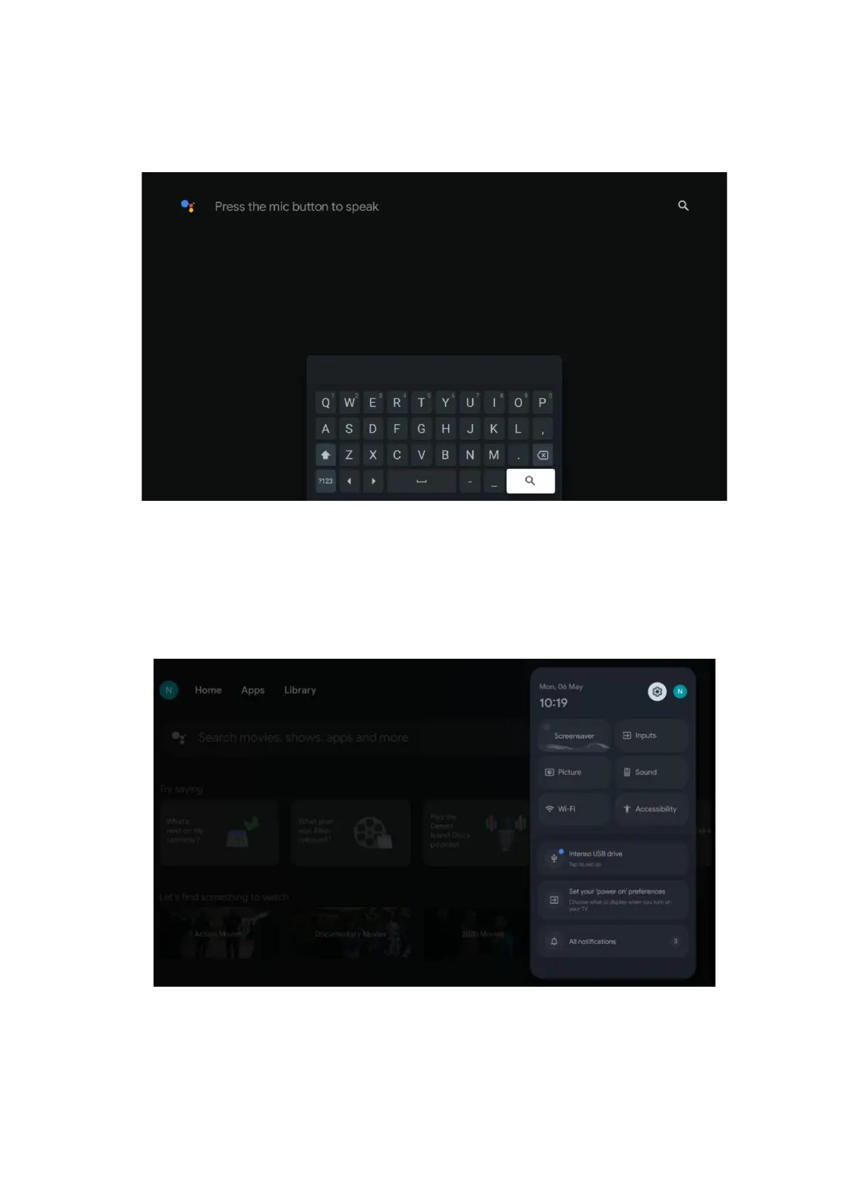 Keyboard search – Select the search bar and press OK. The virtual Google keyboard will appear