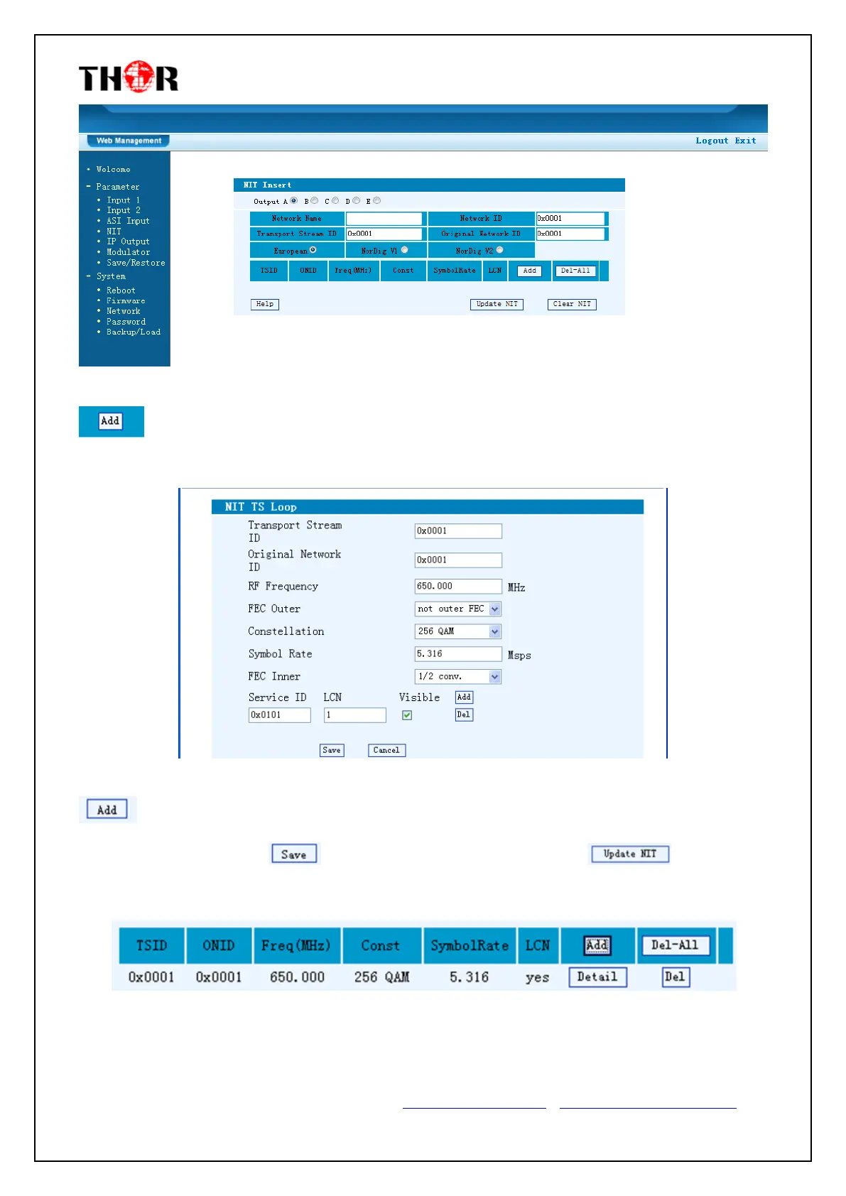 all the data, click on “Save” to save the setting. Click “UpdateNIT” to update the