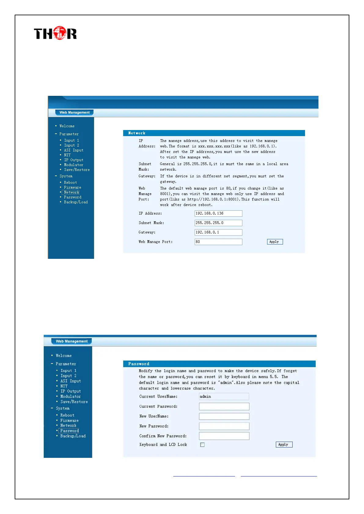 After putting the current and new Username and Password, click “Apply” to save the configuration.