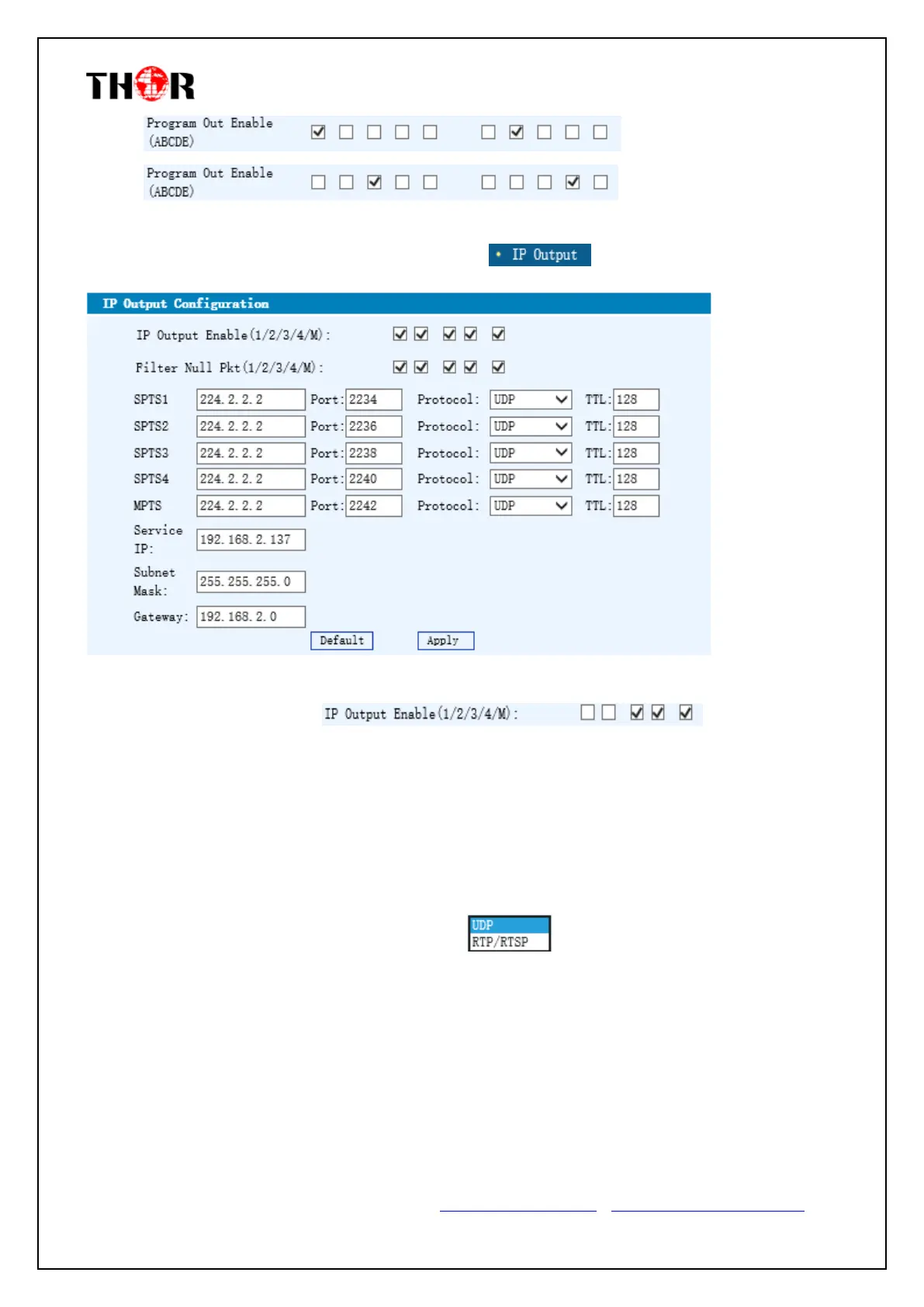 Above you can see all boxes are checked and outputting IP on Multicast for both SPTS and MPTS