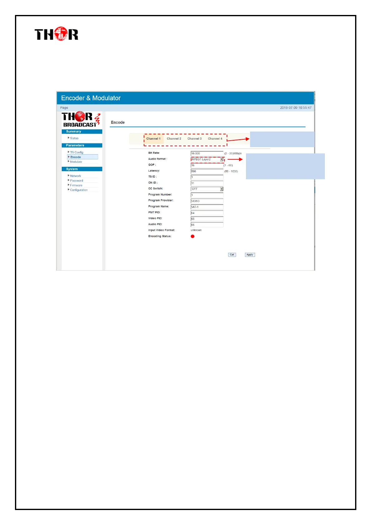 Click “Encode”, it displays the information of the program from the 4 HDMI encoded channels