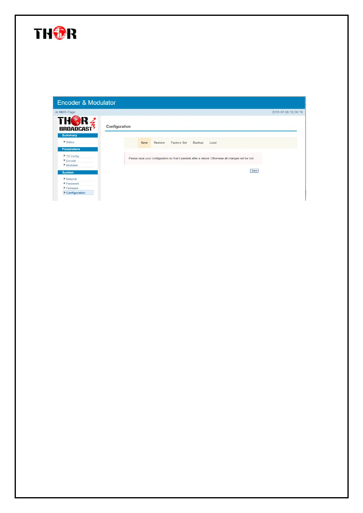 Click Save/Restore/Factory Set/Backup/Load, it displays the screen where to
