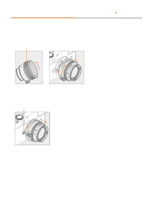 Note: After removing the lens, cover the rear lens cap and place the front end