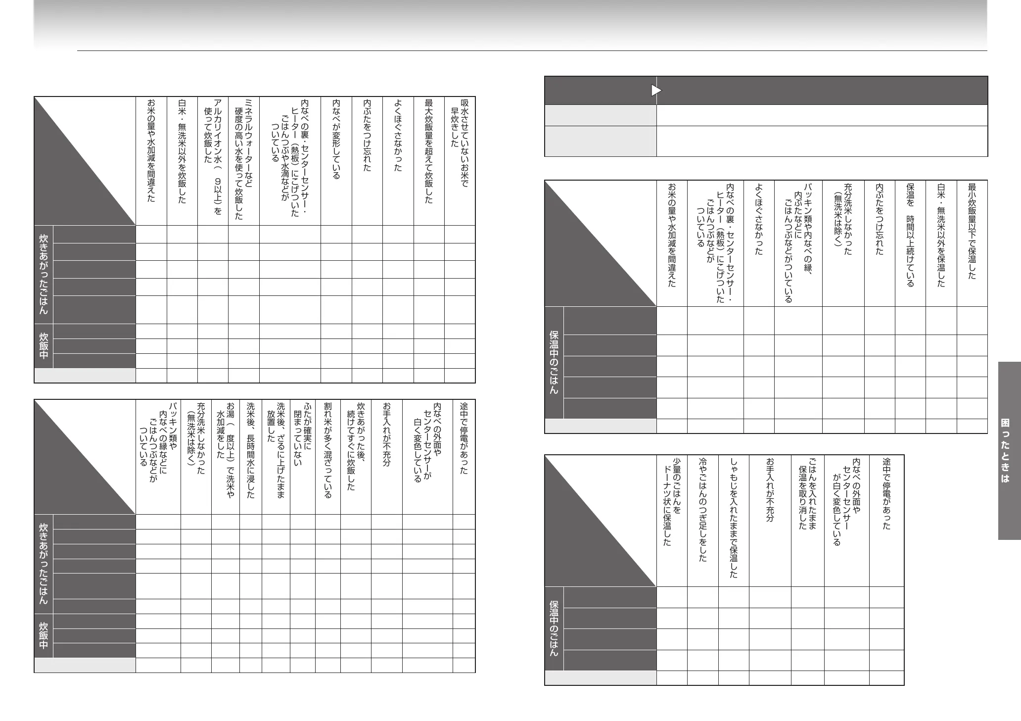 炊きあがったごはん、炊飯中、保温中のごはんがおかしいときは、次の点をお調べください。