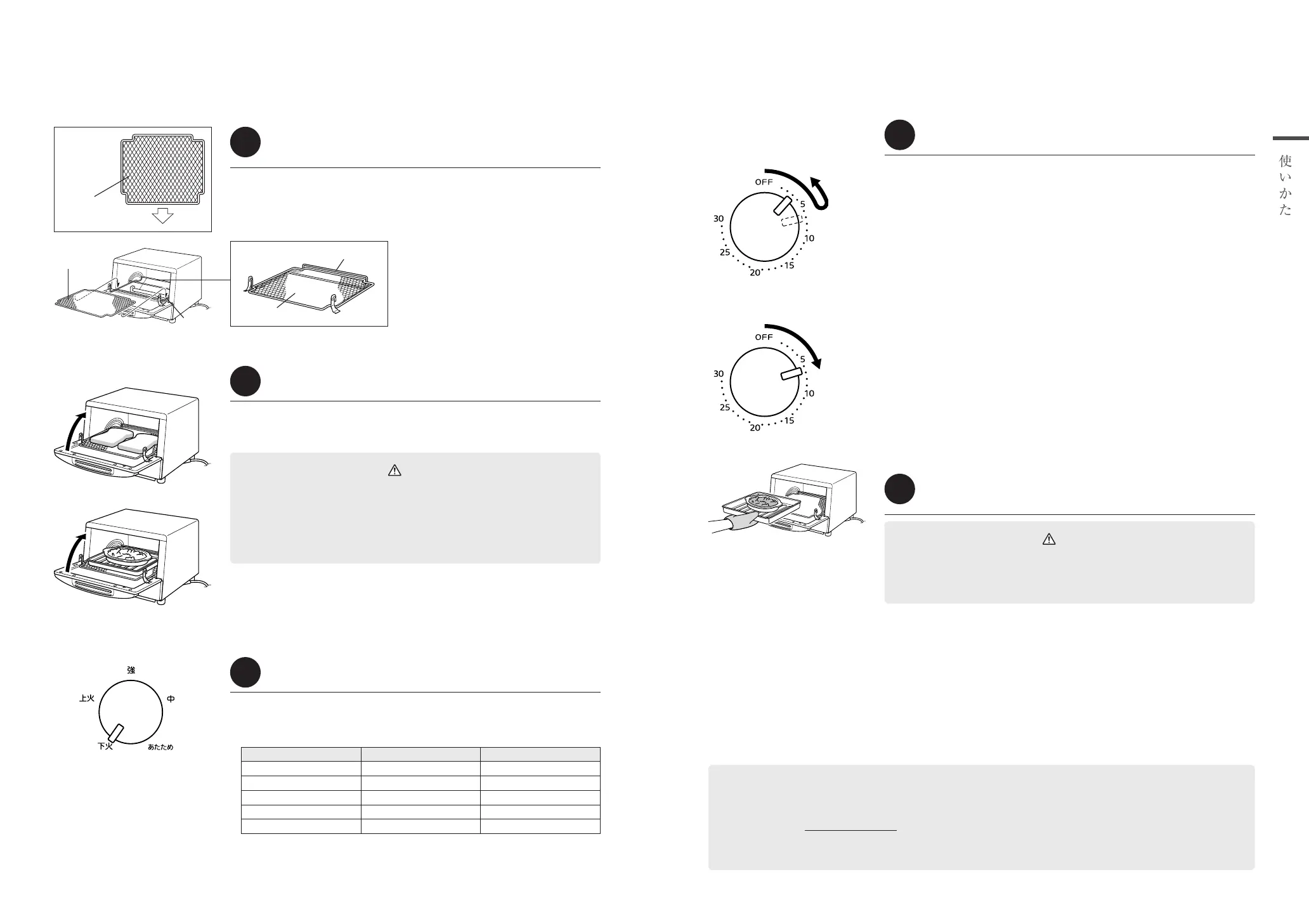 調 理トレ イは 、必 ず 付 属 の もの を 使 用 す る 。また 、焼 アミから 落 ちる お そ れ