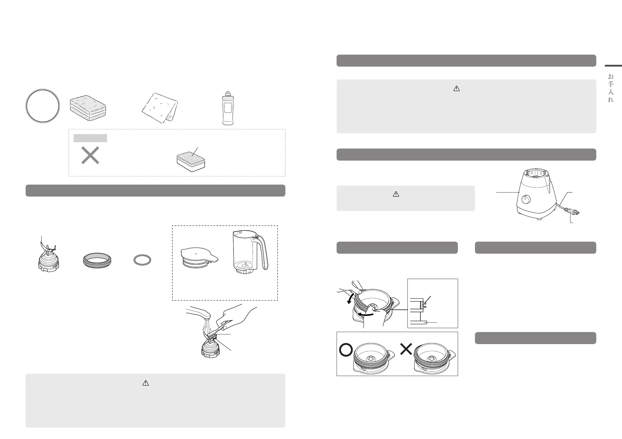 使用 後は、いつまでも清 潔にご使用いただくために、必ずその日のうちにお手 入 れしてください。